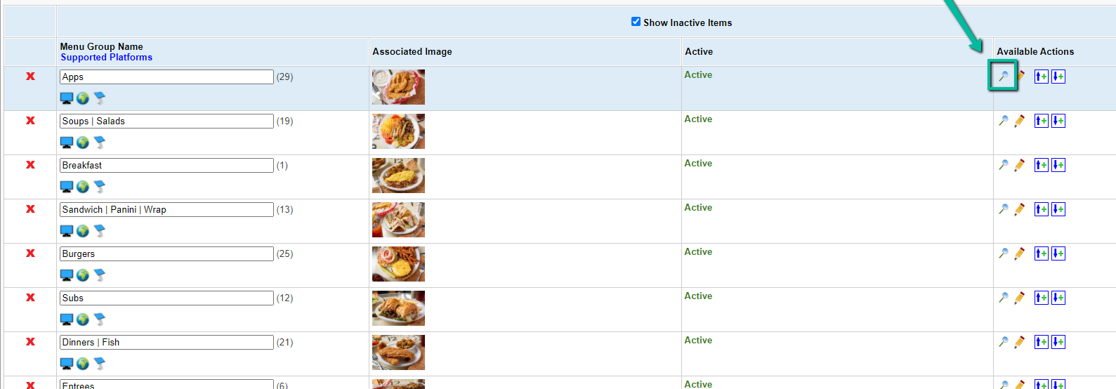 5. Click the 'edit' icon next to the menu item you would like to update.