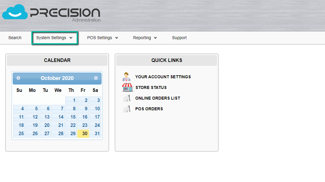 1. Log in to the web admin panel with your username and password. If you do not have an account yet, please contact support at support@precsionpos.com. 2. Select 'System Settings' from the navigation bar. 3. Select 'Menu Groups' from the drop down ...